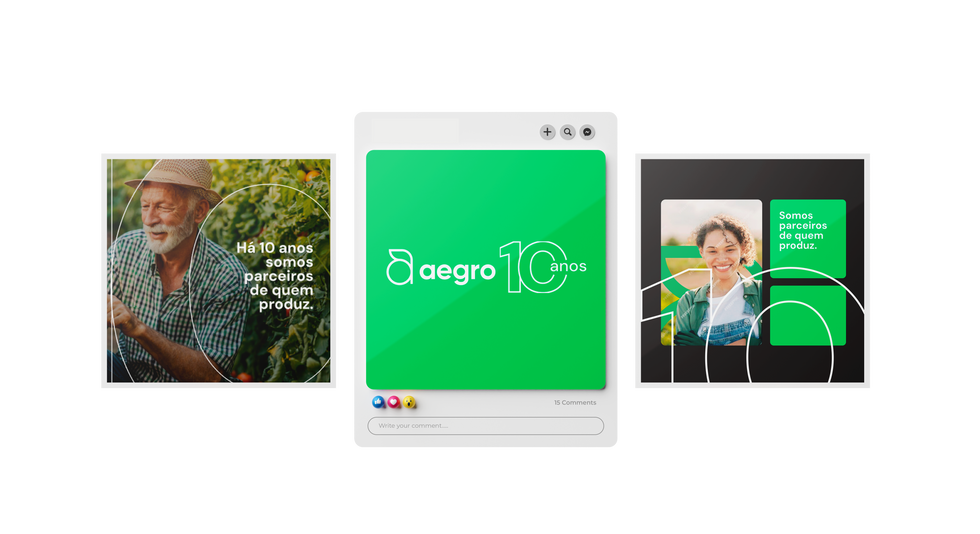 Campanha comemorativa dos 10 anos Aegro. Comunicação para clientes externos e internos, e o evento de celebração.